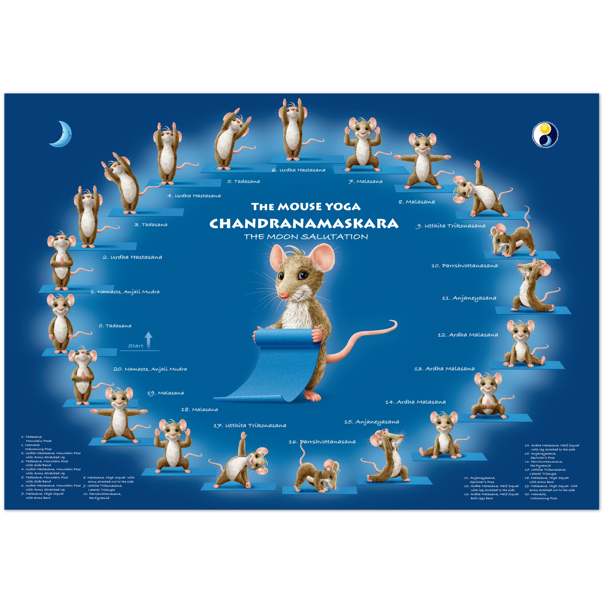 „Chandranamaskara, En, Yoga für Mäuse“ Aluminum DIBOND® Print 70×100 cm / 28×40″